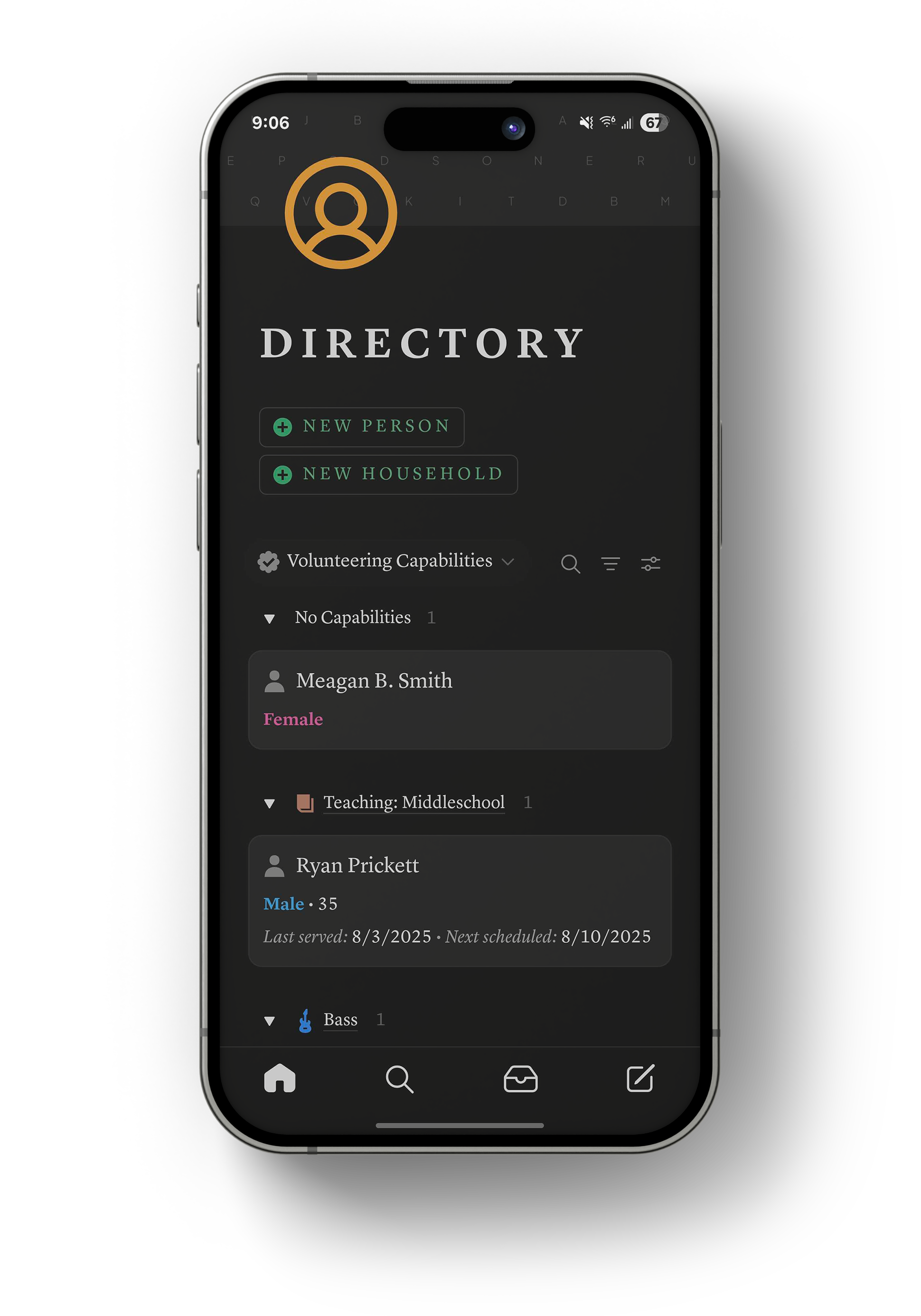 Organize your contacts into households, groups, serving capabilities and more. Add & edit fields to track the info you care about.