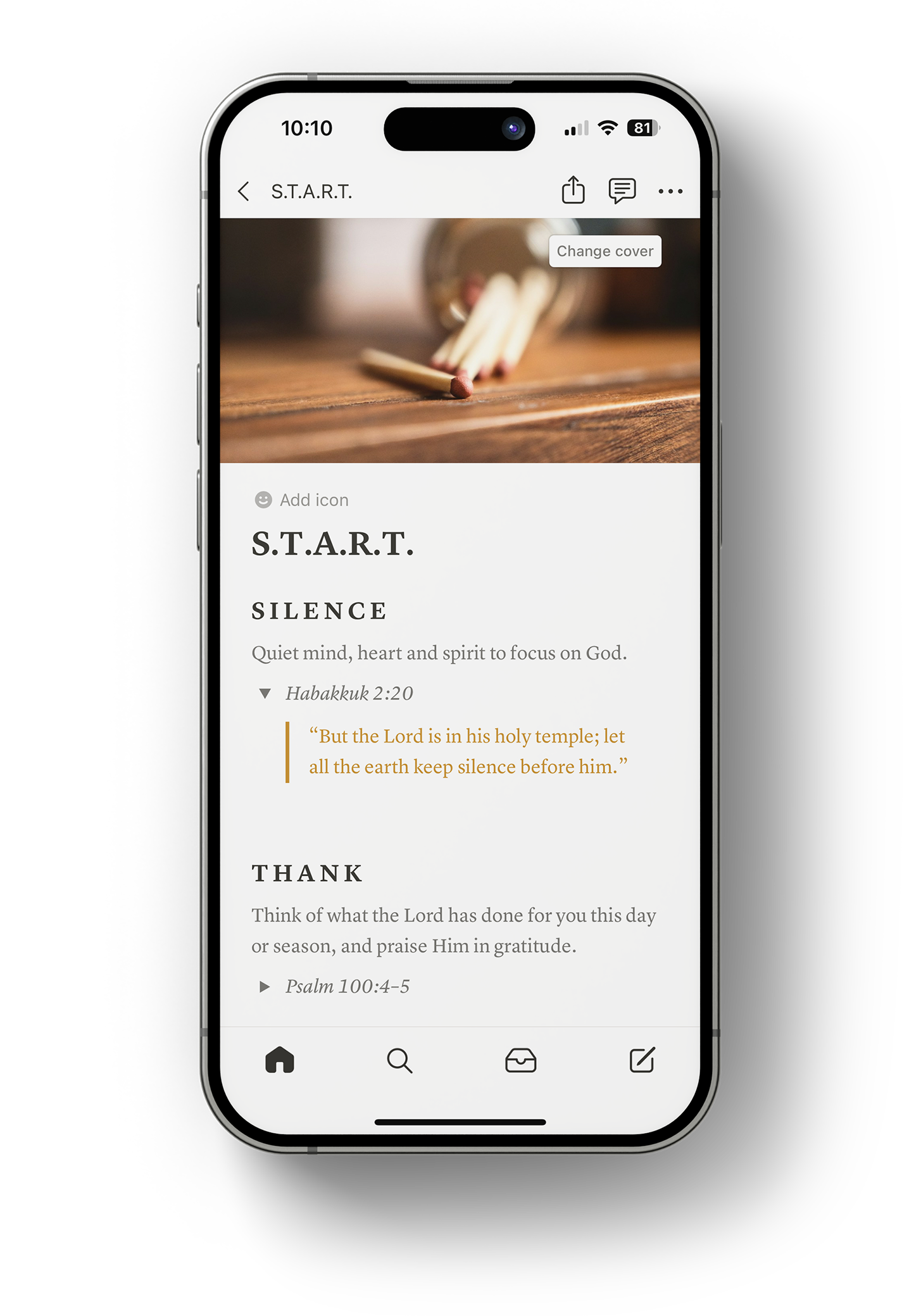 Use a template on the Starters page (and add your own) to walk through prayer patterns that cut through distractions and help you focus on being with the Lord.