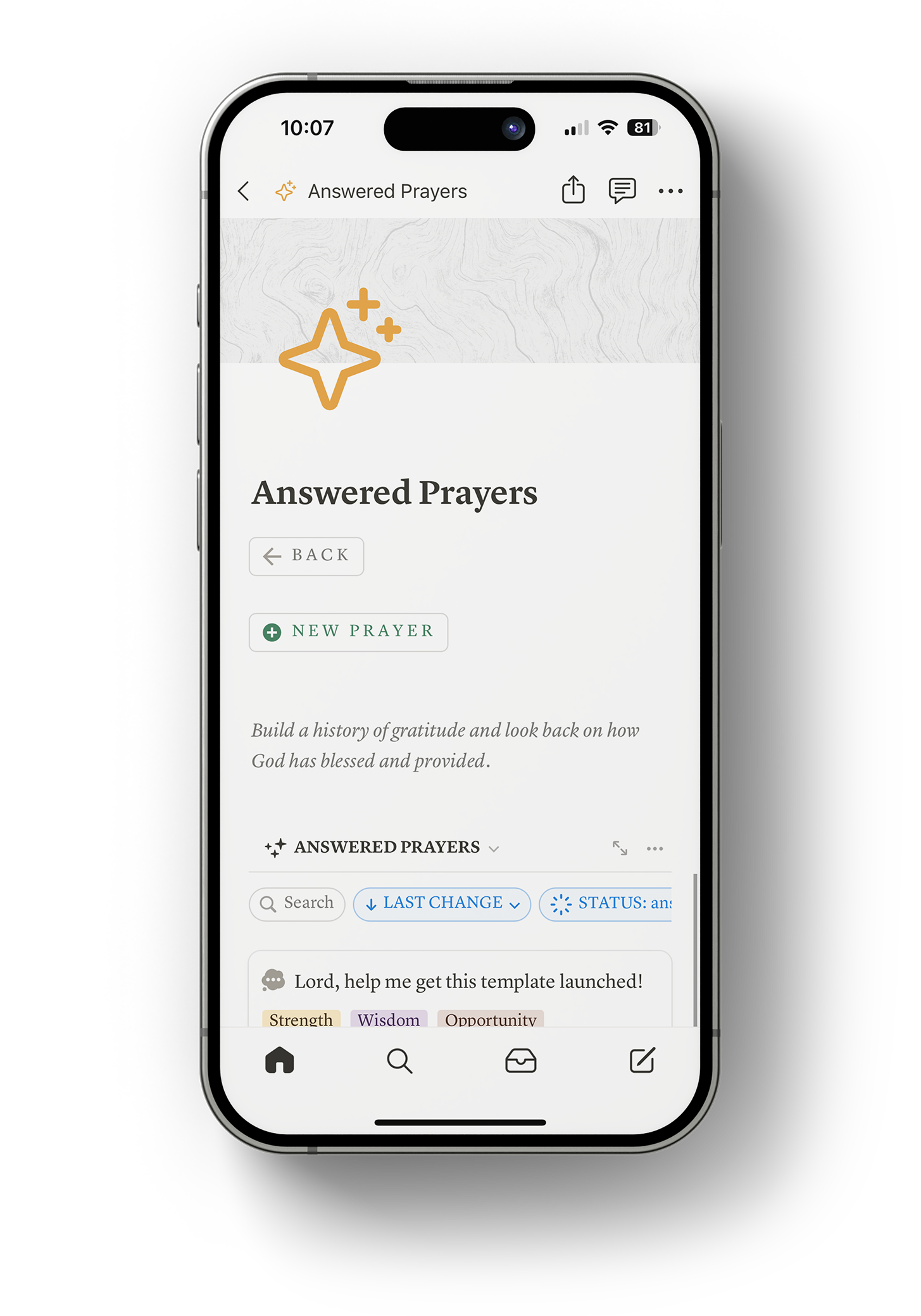 Don't let God's goodness fade from memory. Each prayer you mark 'answered' becomes another reason for faith and praise tomorrow.