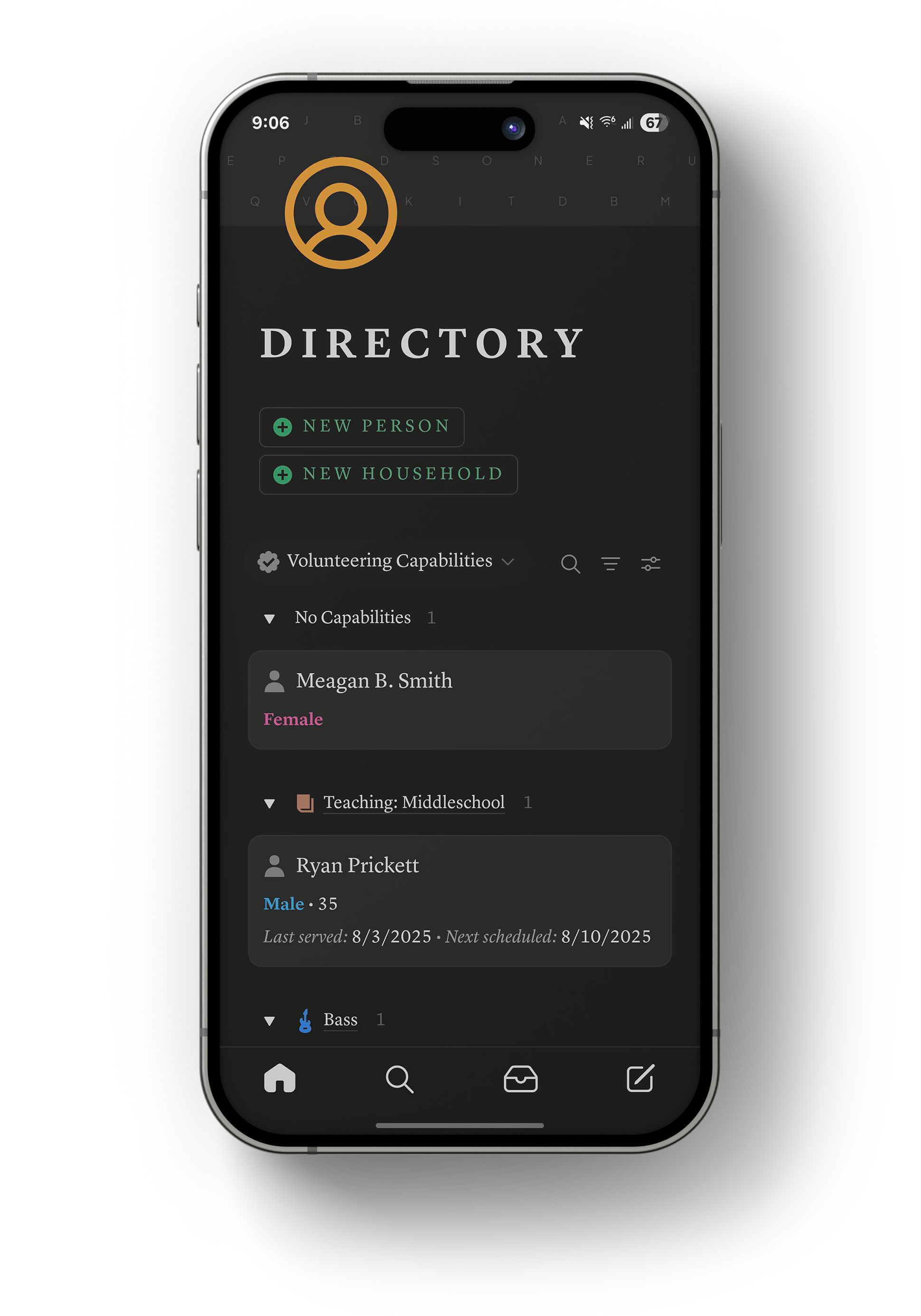 Organize your contacts into households, groups, serving capabilities and more. Add & edit fields to track the info you care about.
